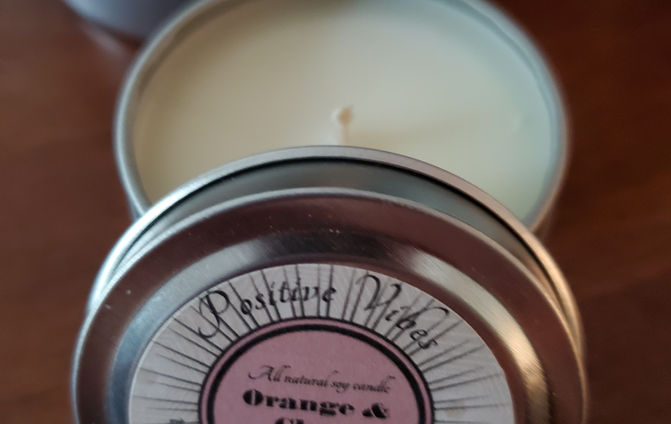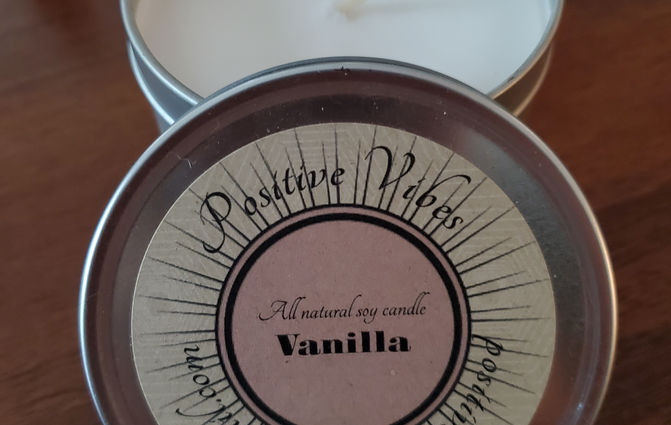 All natural, phthalate free 8 oz. Soy Candles with uplifting message under the lid.